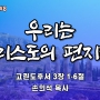 | 설교본문 | 제목 : [수요예배 설교] 우리는 그리스도의 편지라_고린도후서강해#8 설교자 : 손의석 목사 성경말씀 : 고린도후서 3:1~6 일자 : 2025-10-22 [고린도후서 3:1~6] [고후 3:1] 우리가 다시 자천하기를 시작하겠느냐 우리가 어찌 어떤 사람처럼 추천서를 너희에게 부치거나 혹은 너희에게 받거나 할 필요가 있느냐 [고후 3:2] 너희는 우리의 편지라 우리 마음에 썼고 뭇 사람이 알고 읽는 바라 [고후 3:3] 너희는 우리로 말미암아 나타난 그리스도의 편지니 이는 먹으로 쓴 것이 아니요 오직 살아 계신 하나님의 영으로 쓴 것이며 또 돌판에 쓴 것이 아니요 오직 육의 마음판에 쓴 것이라 [고후 3:4] 우리가 그리스도로 말미암아 하나님을 향하여 이같은 확신이 있으니 [고후 3:5] 우리가 무슨 일이든지 우리에게서 난 것 같이 스스로 만족할 것이 아니니 우리의 만족은 오직 하나님으로부터 나느니라 [고후 3:6] 그가 또한 우리를 새 언약의 일꾼 되기에 만족하게 하셨으니 율법 조문으로 하지 아니하고 오직 영으로 함이니 율법 조문은 죽이는 것이요 영은 살리는 것이니라 #명륜중앙교회 #수요예배설교 #손의석목사 #고린도후서강해(8) |